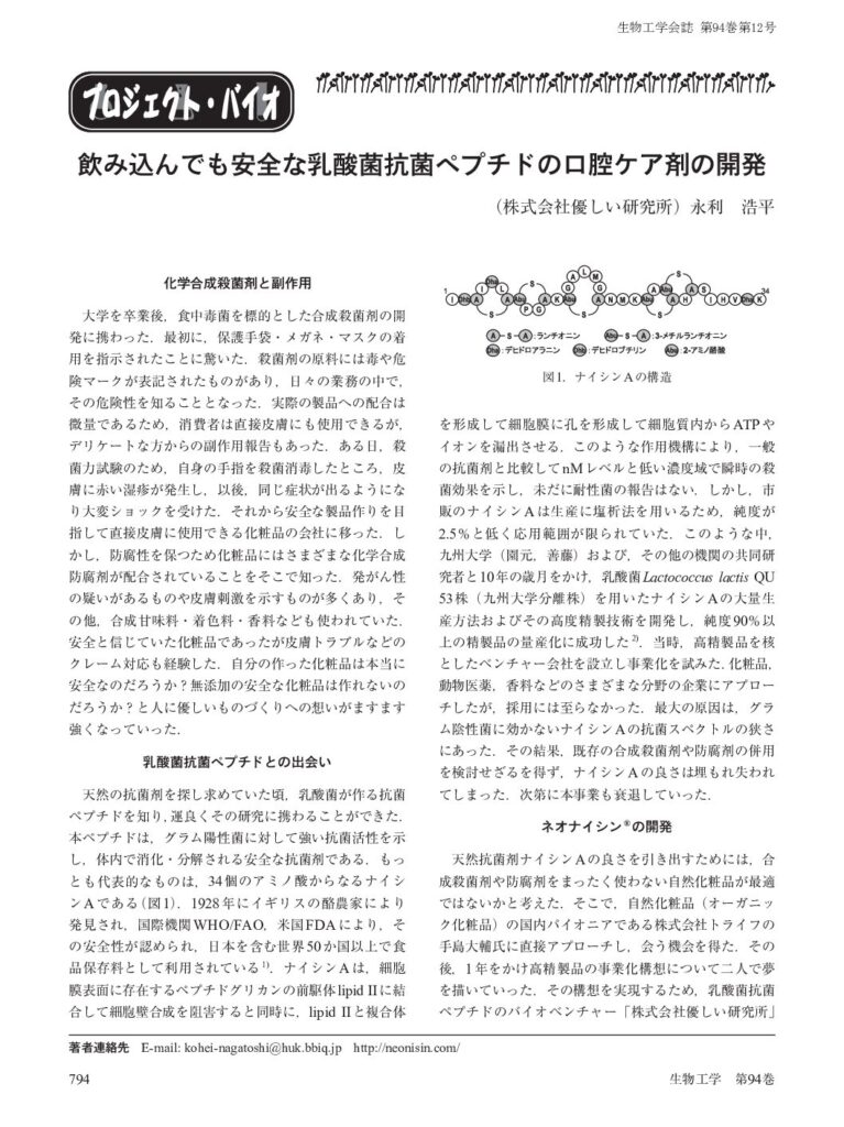 抗菌ペプチド「ナイシン」を高度精製した「高純度ナイシンA」をオーガニック化粧品の保存料や衛生剤、社会貢献に活用できないかと、東日本大震災のあった2011年3月に相談メールを送ったことから始まりました。
