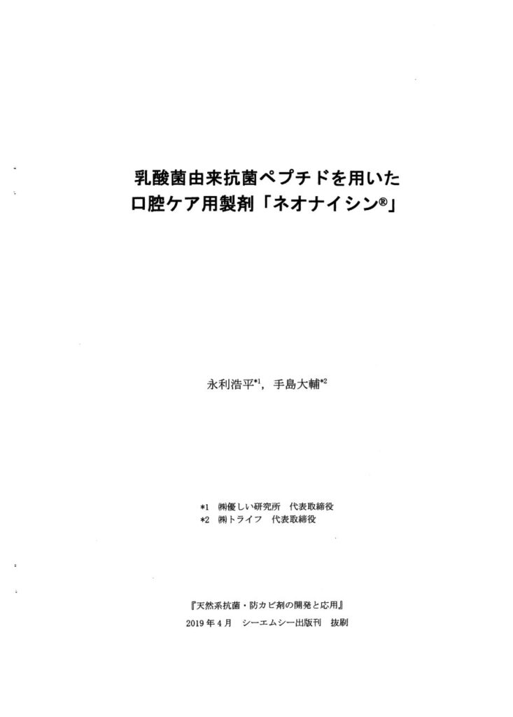 臨床効果と安全性を両立する、植物性食品由来の清潔な、口腔ケア用製剤として理想的な乳酸菌ペプチド特許製剤「ネオナイシン®」の発明と特許取得に至りました。